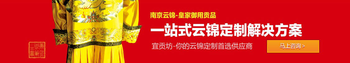 南京宜貢坊云錦文化科技有限公司成立于二OO一年,場地面積10000㎡,致力于做中國知名的云錦,宜貢坊云錦文化科技有限公司座落于江寧開發(fā)區(qū)。做為江蘇云錦文化科技品牌之一,南京宜貢坊擁有雄厚的技術(shù)力量和實(shí)力,現(xiàn)有大型傳統(tǒng)花木樓織機(jī)幾十臺,織造師、研究設(shè)計人員數(shù)百人。公司擁有直屬北京、深圳、上海辦事處和近千家緊密經(jīng)銷商、合作商;產(chǎn)品在南京中央商場、新百、上海八百伴、上海友誼商場,泰州金鷹等全國多家大型商場均有專柜。